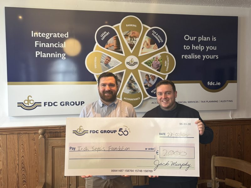 Irish Sepsis Foundation Pictured: James Corcoran (Irish Sepsis Foundation) and Shane Barrett (FDC Financial Services Ltd.)