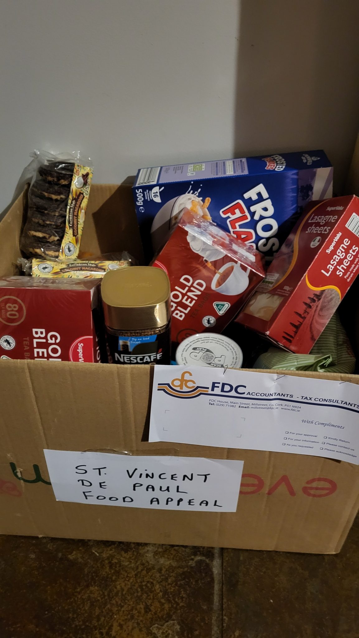 Thank you for thinking of us and organising the food appeal. We really appreciate your effort. We were delighted to accept your donation to St Patrick’s Conference.